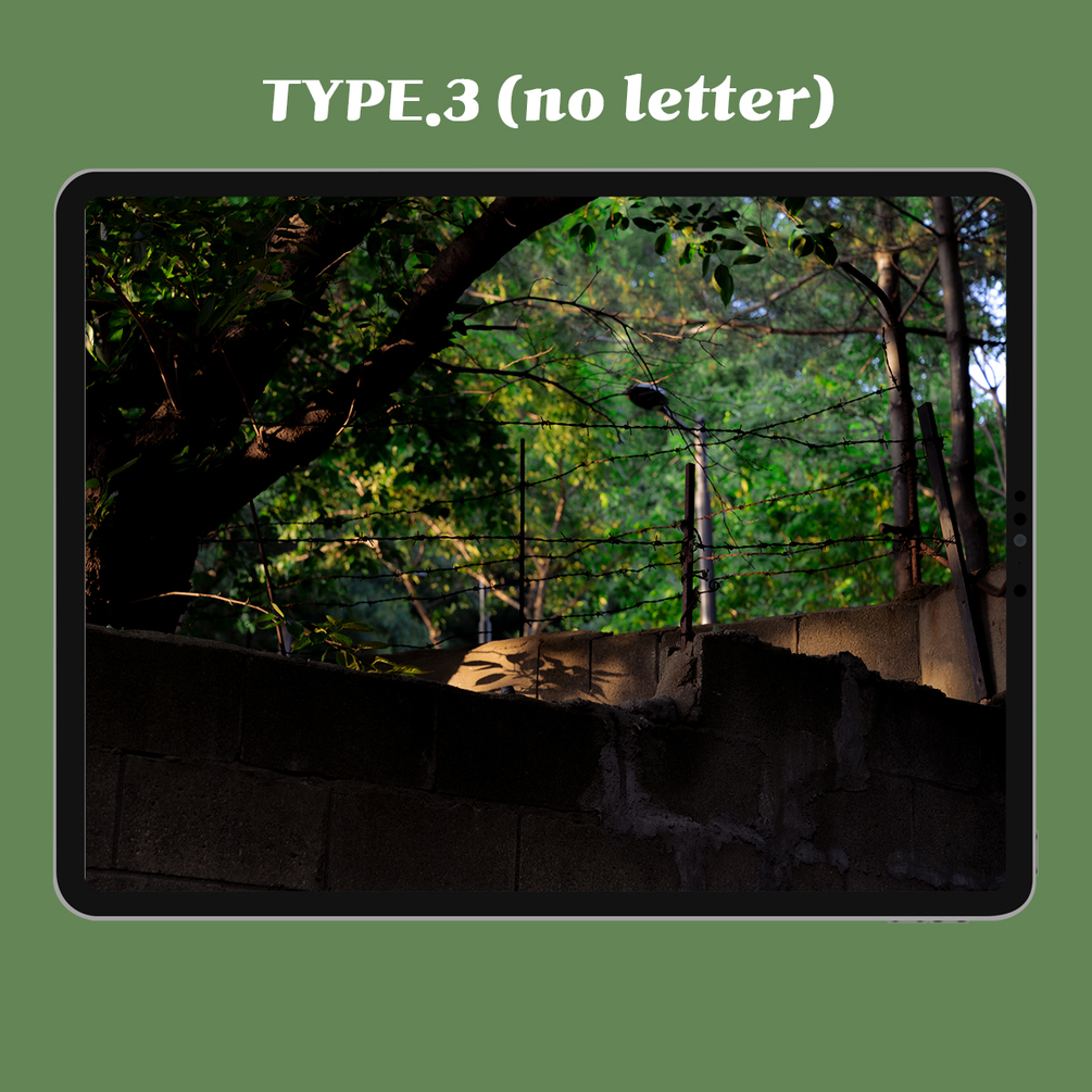 - [type.1.zip]&[type.2.zip]&[type.3.zip] file contains each 8 JPG files(letter version 4 files + no letter version 4 files).